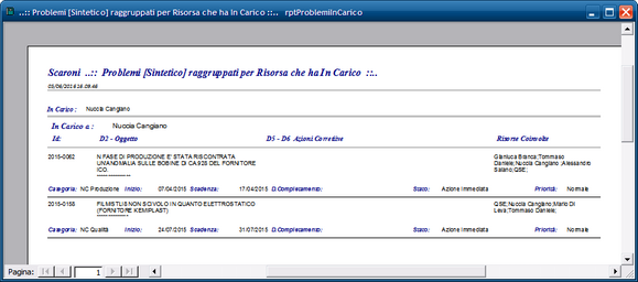 La maschera permette di visualizzare i Problemi NON COMPLETATI (data completamento = vuota) che sono <In Carico> a :