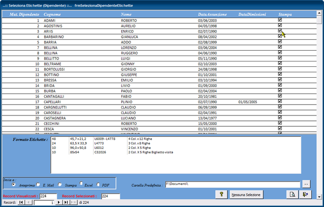 Manualmente si possono selezionare i record e solo quelli col segno di spunta verranno stampati .