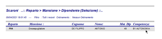 Pannello Comandi Principale > Pannello Stampe > Reparto Mansione Dipendente