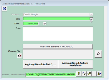 Indicare nel campo NOTA l'esito dell'esame e/o allegare un file vedi Aggiungi File ad Archivio